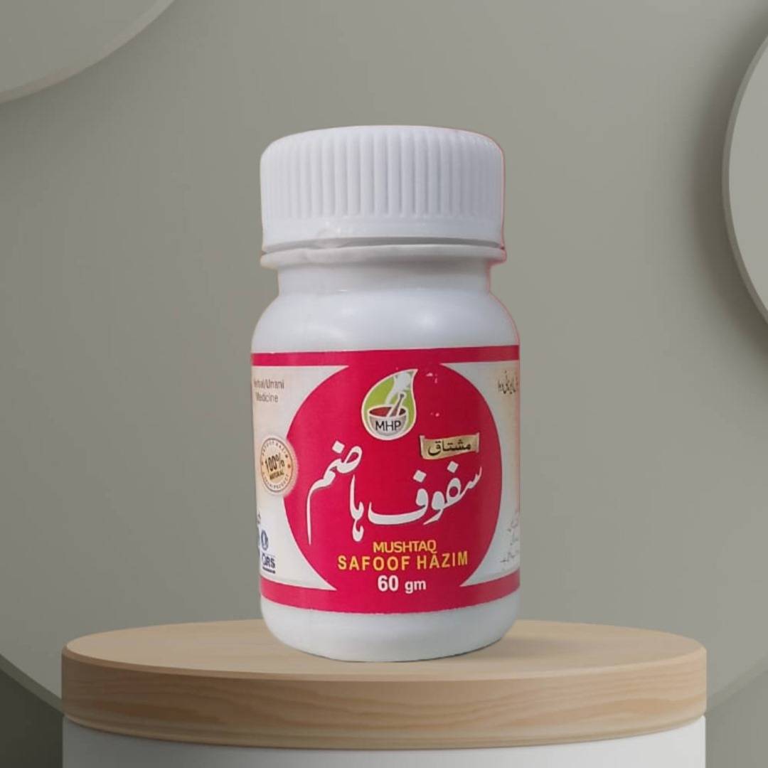 Safoof Hazim is a traditional Unani herbal formulation that supports digestion, relieves bloating, and reduces gas and acidity. It is made from natural ingredients that help improve appetite and regulate the digestive system.
